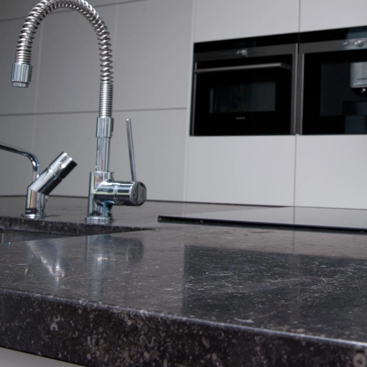Spray het aanrechtblad in met de reiniger. Neem het af met een schoon (vochtig) doekje. Bij hardnekkige vlekken kan de reiniger een paar minuten worden ingewerkt.
